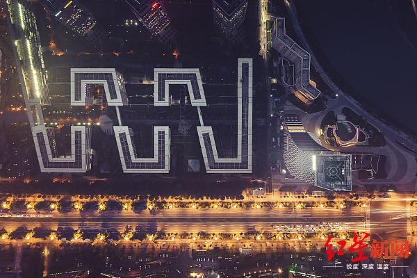 在2018年全國(guó)雙創(chuàng)活動(dòng)周開(kāi)幕式的主會(huì)場(chǎng)——成都菁蓉匯7號(hào)樓的右側(cè)外立面,有一面黑色的玻璃幕墻,面積約有30平米。
